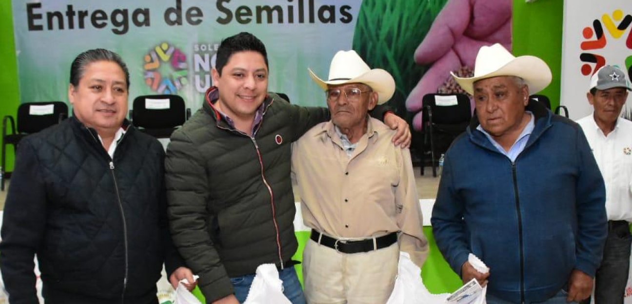 En apoyo a los productores agrícolas del municipio de Soledad, el alcalde Gilberto Hernández Villafuerte realizó la entrega gratuita de 6.5 toneladas de semilla de alfalfa y avena forrajera, en beneficio de 250 campesinos de ocho ejidos y tres organizaciones.