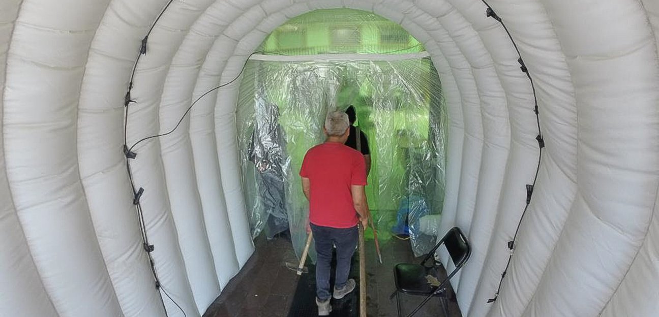 Como una medida más de prevención ante la emergencia sanitaria por el Covid- 19, el Ayuntamiento de Soledad instaló un túnel desinfectante al ingreso de la Presidencia Municipal, que funciona mediante un sistema que está avalado por la Comisión Estatal de Protección contra Riesgos Sanitarios (COEPRIS) de la Secretaría de Salud.