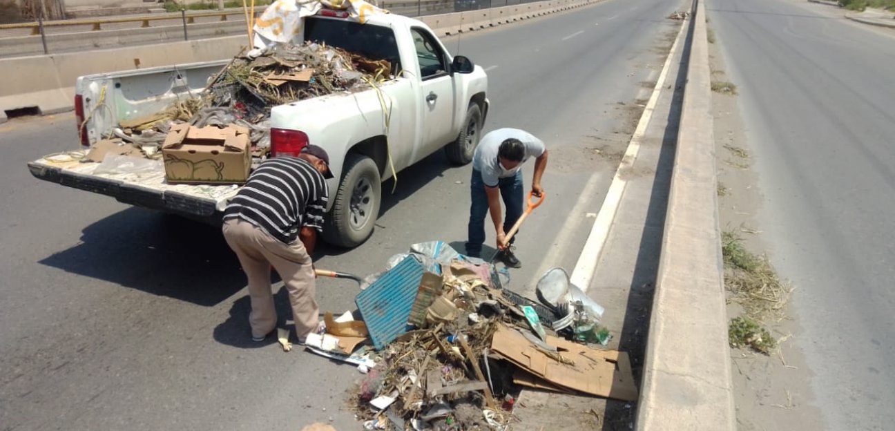 Señaló que con una cuadrilla de ocho personas, se efectúa la limpieza y deshierbe de las principales avenidas y arterias del municipio, como el caso del Periférico Oriente en la entrada a Fracción Rivera, La Virgen, La Constancia, carretera Rioverde, carretera a Matehuala, avenida Del Valle y Valentín Amador, donde se concentraron aproximadamente 11 toneladas de tierra y basura.