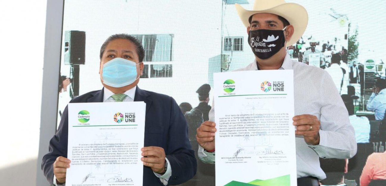 Con el objetivo de intercambiar experiencias de éxito sobre buenas prácticas gubernamentales, el alcalde de Soledad, Gilberto Hernández Villafuerte, se reunió con su homólogo del municipio de Cadereyta Jiménez, Nuevo León, Ernesto Quintanilla Villarreal, quien mostró su interés por la ejecución de programas que satisfagan las necesidades de la población más vulnerable.