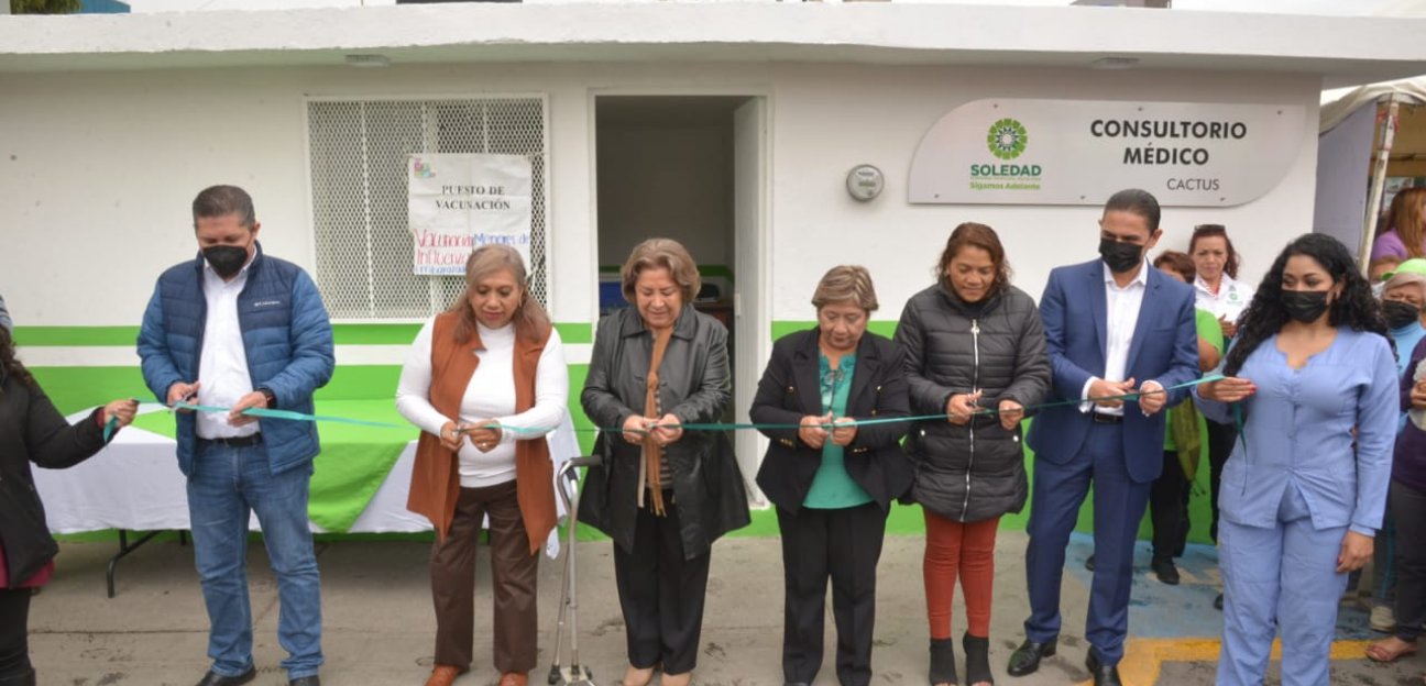 Soledad de Graciano Sánchez; SLP.- Acompañada de la Presidenta del Sistema Municipal DIF, María del Pilar Cardona Reyna y de otros integrantes del gabinete municipal; la alcaldesa de Soledad de Graciano Sánchez, Leonor Noyola Cervantes, inauguró un nuevo consultorio médico gratuito que se ubica en la Avenida Cactus número 119, en el cual se ofrecerá atención de calidad para todos y cada uno de los habitantes de dicha zona, tal y como lo ha instruido la jefa de gobierno.