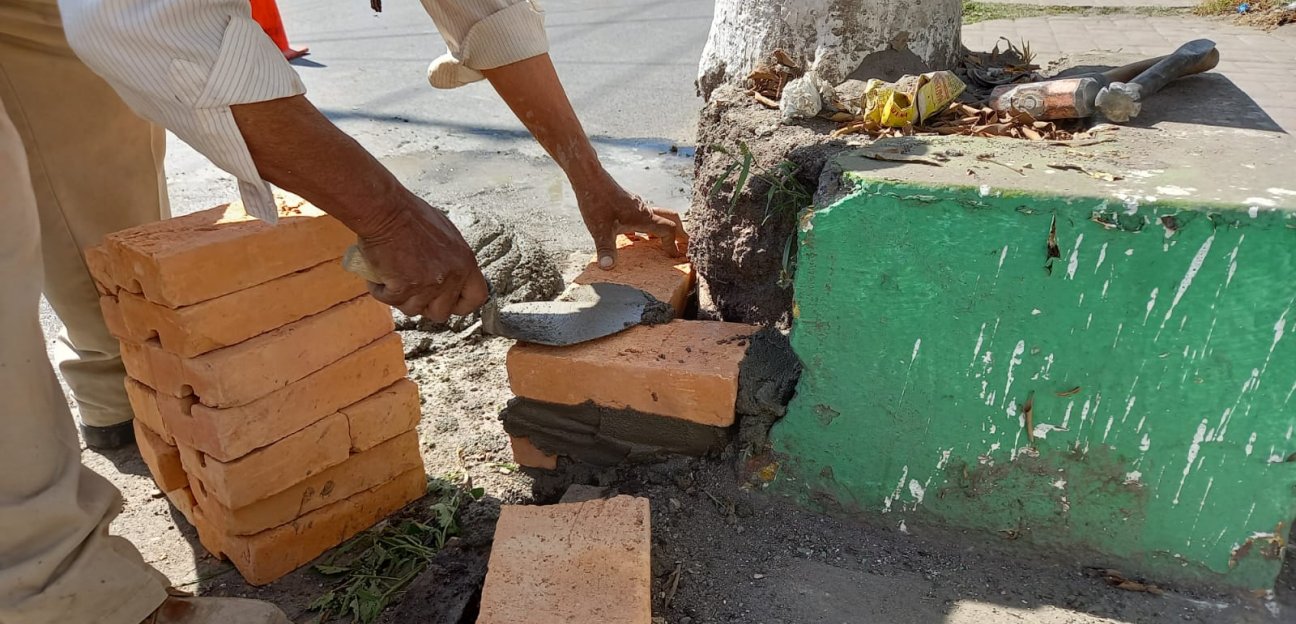 • A la par se realiza la reparación de maceteros en la avenida principal de la localidad.