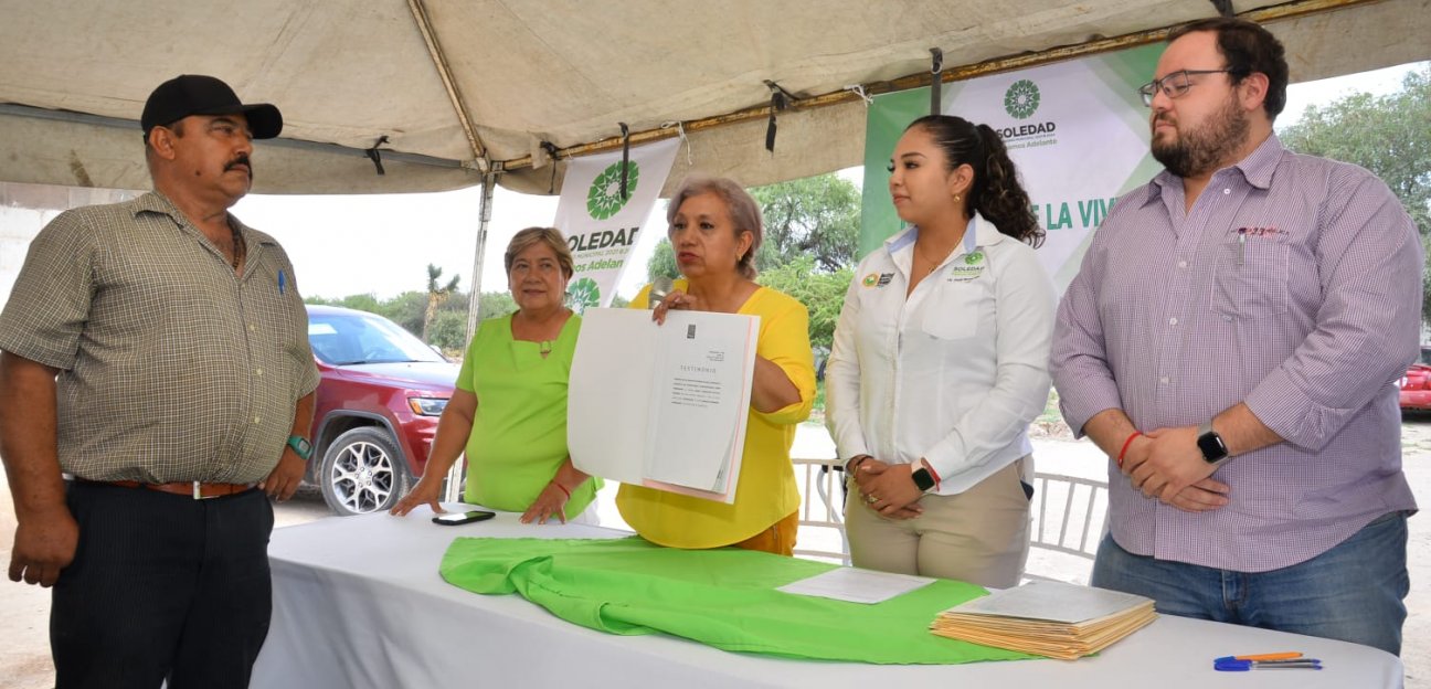 En la colonia Genaro Vázquez, la Alcaldesa de Soledad de Graciano Sánchez, Leonor Noyola Cervantes realizó el proceso de firma de 14 escrituras que ahora brindan y garantizan certeza jurídica a familias sobre sus inmuebles; acción que se desarrolló como parte de proteger el patrimonio de las y los soledenses mediante el trabajo del Instituto Municipal de la Vivienda (INMUVISO).