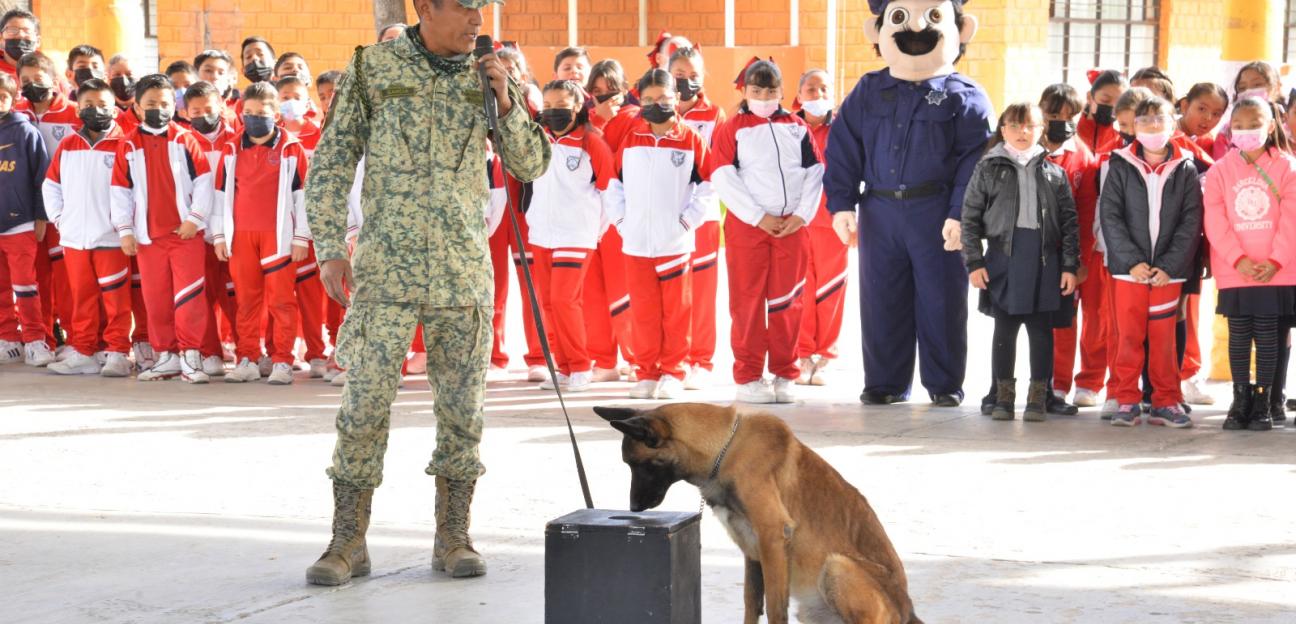 Personal del Ejército Mexicano realizó actividades de proximidad con binomios caninos, como parte de una demostración sobre las capacidades y habilidades de los canes en la identificación de sustancias prohibidas, lo cual fortalece a las acciones de las corporaciones de seguridad en la prevención y disuasión de actos ilícitos.