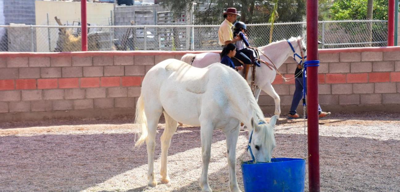 Juan Lara, encargado del área de Equinoterapia, comentó que en este lugar, a través de caballos especializados, así como personal profesional, se brinda rehabilitación dirigida a cada necesidad. Para las y los niños con autismo, este procedimiento ayuda a aumentar la sensibilidad y a reducir el miedo a tocar objetos mediante el uso de texturas que sensibilizan su entorno; en el caso de infantes con condiciones neurológicas, los beneficios incluyen relajación, especialmente por medio del calor emanado por el caballo durante las sesiones.