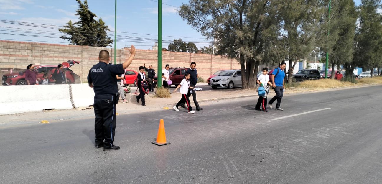 Como parte del compromiso de apoyar a la ciudadanía y para garantizar la seguridad de vialidades primarias, la Dirección de Tránsito y Policía Vial de Soledad de Graciano Sánchez mantiene y reforzará la presencia de oficiales sobre Bulevar Valle de Los Fantasmas - Carretera Rioverde a la altura del colegio Valladolid, específicamente en horas de entrada y salida para brindar asistencia en el cruce de menores, padres y madres de familias, así como de toda la comunidad escolar y ciudadanía en general que utilizan el cruce.