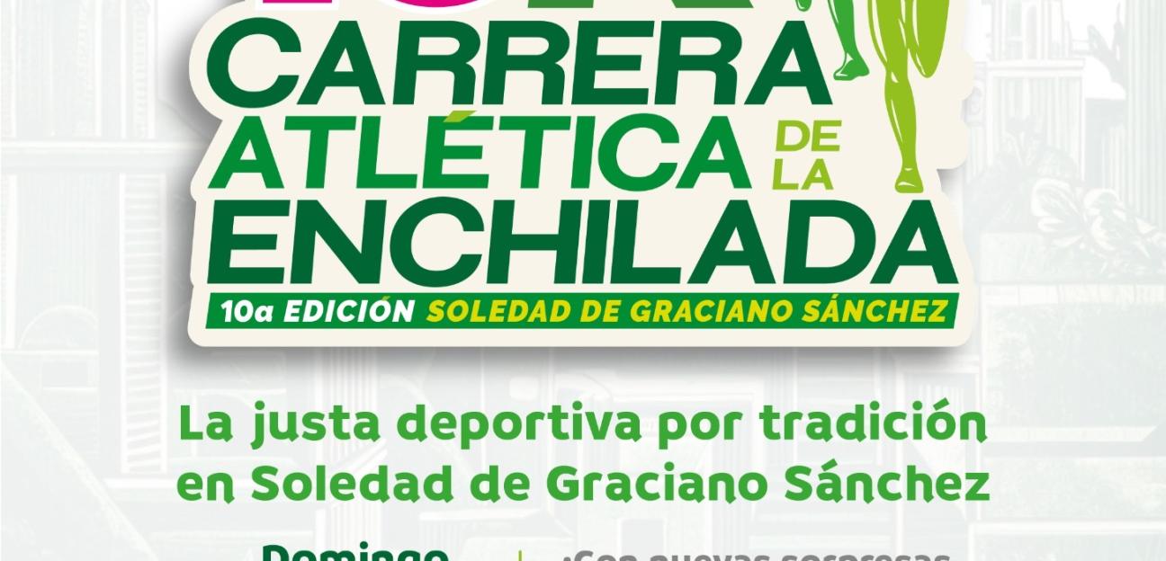 El Ayuntamiento de Soledad de Graciano Sánchez, a través de la Coordinación de Deporte Municipal, anuncia la décima edición de la tradicional Carrera Atlética de la Enchilada 10K y 3K, la competencia más esperada por corredores amateur y profesionales, y reconocida por ser la de mayor premiación en efectivo y en especie de la región; este año, con el impulso del Alcalde, Juan Manuel Navarro Muñiz, se preparan nuevas sorpresas para las y los competidores.